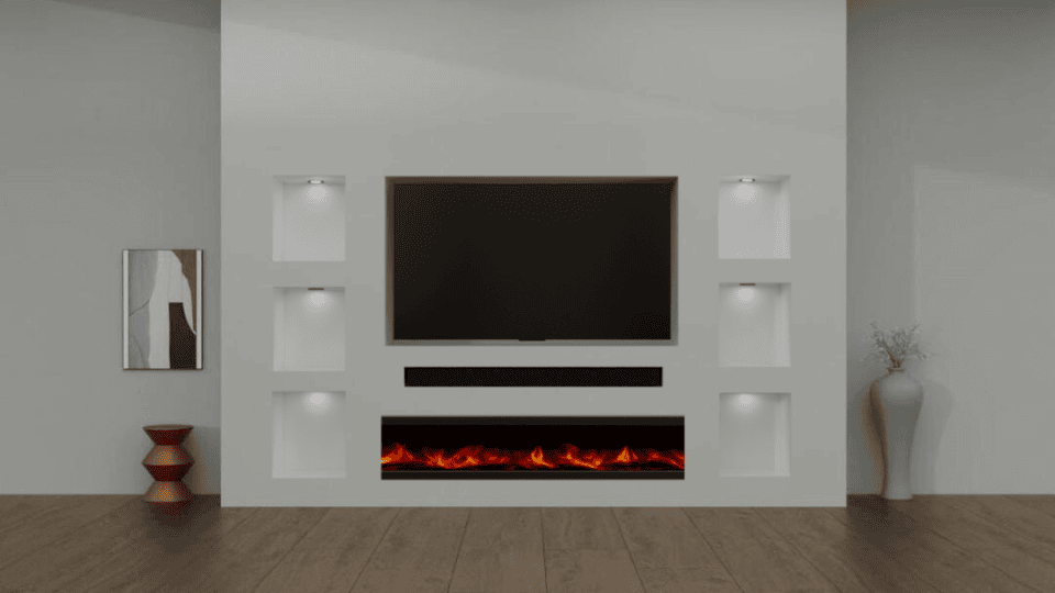 De afwerking van Nova is volledig stucklaar, waardoor de wand direct klaar is voor schilderwerk of verdere afwerking. Dankzij de strakke belijning, de perfecte symmetrie en de technische verfijning van de haard en verlichting is Nova niet zomaar een cinewall, maar een architectonisch statement dat de woonkamer tot leven brengt.